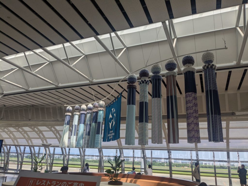 仙台空港には仙台七夕の飾りがされている
