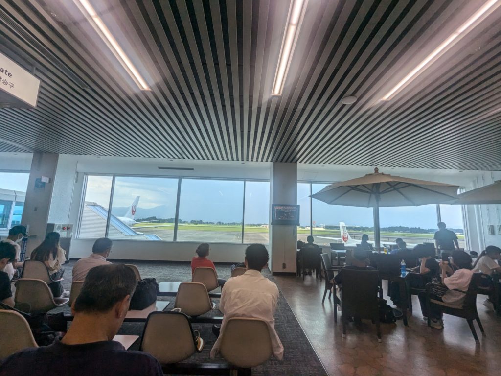 あっというまに鹿児島空港到着。JALで乗り継ぎだけど2時間ぐらい待ち時間